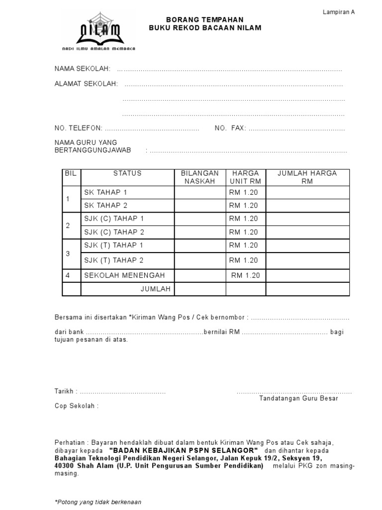Setiap murid merekod buku yang dibaca dalam. Baca buku / bahan bukan buku. .telah memperkenalkan program nilam di peringkat sekolah rendah dan sekolah menengah. Buku rekod bacaan nilam sekolah rendah sekolah menengah. Roslan bin abd rahim (sekolah rendah) atau emelkan ke.