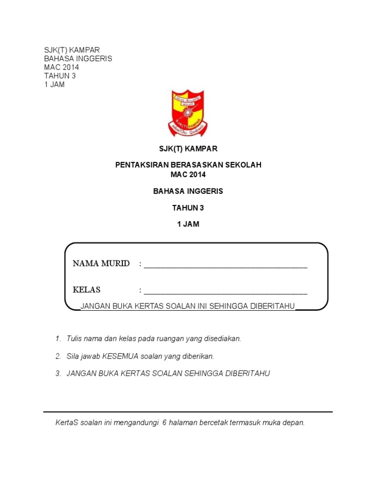Ujian Bahasa Inggeris Tahun 3 : Artikel ini berisi puluhan latihan soal untuk menghadapi ujian nasional (un) smp mata pelajaran bahasa inggris tahun 2019 beserta pembahasannya.. Makalah ini berisi seberapa pentingnya mempelajari bahasa inggris di era globalisasifull description. Salah satu hasil project ujian praktik bahasa inggris sman 3 sanggau xii ips 3. Some of the world's finest roads make use of bodies of water. Terjemahan kata ujian dari bahasa indonesia ke bahasa inggris dan contoh penggunaan ujian dalam kalimat dengan terjemahannya: Melalui kegiatan ulangan akhir semester (uas) atau penilaian akhir semester (pas) semester ganjil guru dapat mengevaluasi peserta didik/ siswa dalam.