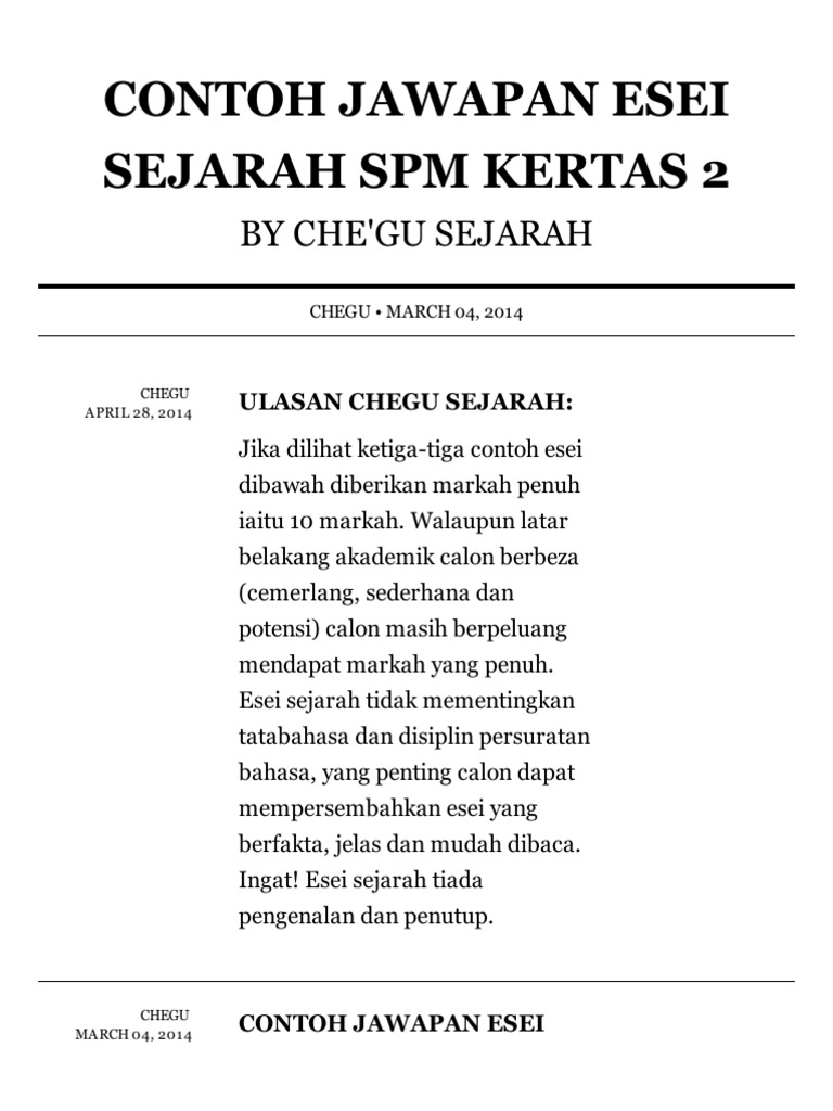 Related : Contoh Jawapan Esei Sejarah : Skema jawapan sejarah spm k2 tingkatan 5 bab 1 bahagian 2..