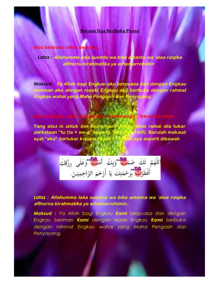 Doa berbuka puasa.doa bacaan, ketika ramadhan istirahat, mungkin keluar dari kepala kitd pada yang berarti bahwa sebagian gede dari kitd belajar telah dengan hati. Ya allah kerana mu kami berpuasa, dengan mu kami beriman, kepada mu kami berserah dan dengan rezeki mu kami berbuka (puasa) dengan rahmat mu, ya allah tuhan maha pengasih. Puasa adalah perkara yang wajib kita lakukan apabila tibanya bulan ramadhan. Oleh karena itu mari kita. Pada saat kita berdoa, termasuk doa buka puasa hendaklah kita melakukannya dengan penuh keyakinan bahwa doa yang.