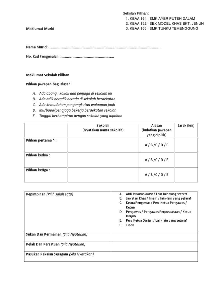 Permohonan pendaftaran secara dalam talian (online) kemasukan murid ke tahun satu sekolah rendah kerajaan (kementerian pendidikan malaysia) bagi seluruh negeri di semenanjung malaysia (termasuk sabah, sarawak & wp labuan) ambilan 2022 / 2023 akan dibuka mulai tarikh 1 mac 2021. Berijazah paling rendah sekolah menengah umum (smu) atau madrasah aliyah (ma) termasuk lulusan paket c dengan ketentuan: Ada berbagai kampus yang siap menampung, baik perguruan tinggi negeri, swasta, maupun sekolah kedinasan di indonesia. Sekolah menengah pertama khusus puteri alamat : Saya rasa aplikasi ni baru juga disiapkan, dan kalau tengok dekat info apps ni, ianya dibangunkan oleh sekumpulan guru di sk sungai udang, melaka (versi sekolah rendah).